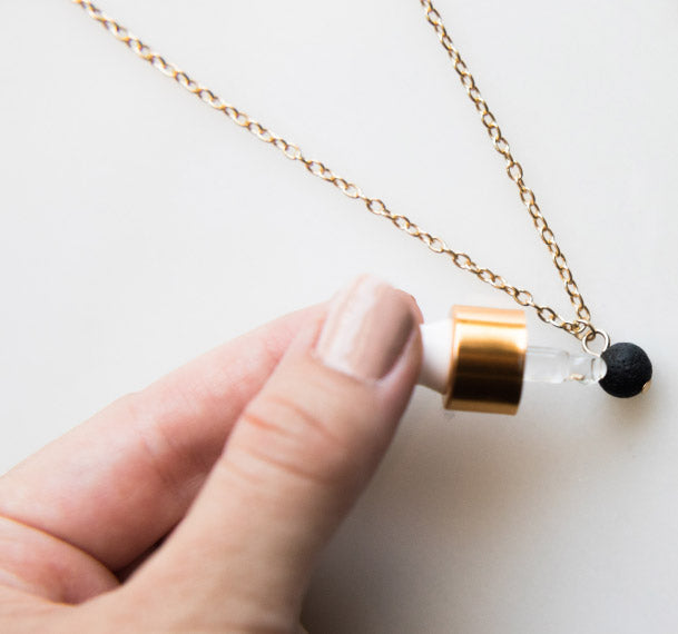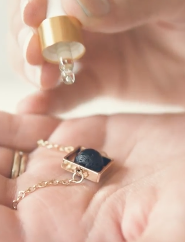 Using your personal Olani oil dropper (included with each order), rub your favorite essential oil directly onto the lava stone. To protect the other components of your diffuser, we recommend you avoid applying oils to the chain or the gold-plated pendant.